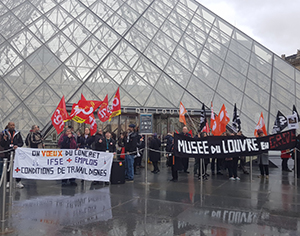 Un préavis de grève intersyndical (CGT, SUD et CFDT ) a été déposé par SUD Culture Louvre au ministère de la Culture le 8 décembre dernier. La forte mobilisation a donné lieu à plusieurs journées d’action menant à la fermeture du musée. Les négociations sont en cours et n’ont pas à ce stade répondu à l’ensemble des revendications au sujet des conditions de travail, des recrutements et des rémunérations.