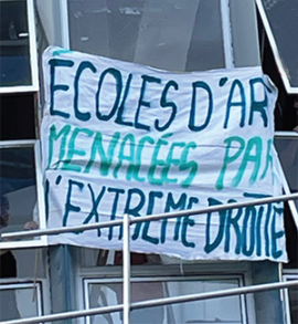 Face à la montée des idées d’extrême droite, face à l’attaque de nos écoles d’art, face la criminalisation de la liberté d’expression, soutenons et relayons cette action collective !