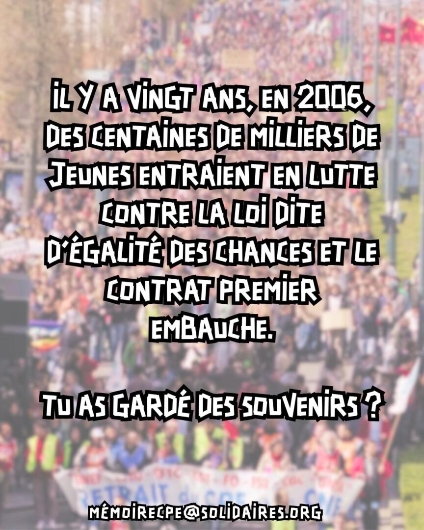 Vous étiez là en 2006 à dire non à la LEC et au CPE ? Vous avez gardé des souvenirs ? Participez à notre collecte !